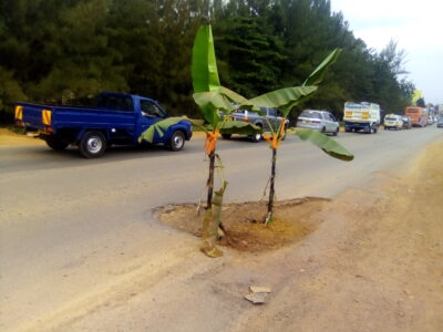 Uganda A man Plants Bananas in a Pot Hole Found in Kampala-Jinja Highway A man planted bananas in a pot hole which developed in the middle of Kampala-Jinja ...